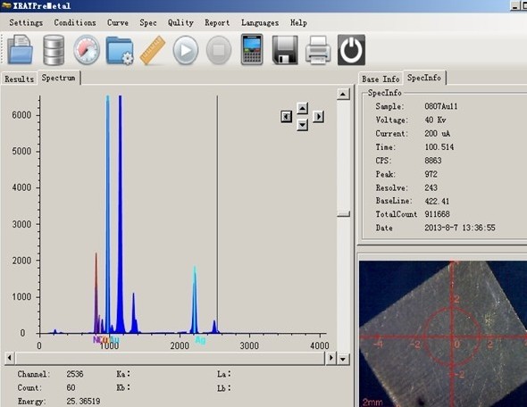 X射線熒光光譜法的優(yōu)點(diǎn):X射線熒光光譜法是目前應(yīng)用于黃金首飾分析中最為廣泛的方法。其優(yōu)點(diǎn)是分析速度快,不損壞樣品,檢測(cè)成本低。目前使用XRF分析儀對(duì)貴金屬進(jìn)行化學(xué)成份分析及純度成色判斷已經(jīng)成為一種廣泛應(yīng)用、極受歡迎的方法,并且符合國家標(biāo)準(zhǔn)GB/T-18043-2008標(biāo)準(zhǔn)。與火花試金法和化學(xué)試劑測(cè)試法相比,使用XRF對(duì)貴金屬進(jìn)行分析是一種更迅速、更經(jīng)濟(jì)的多元素檢測(cè)方法。XRF分析儀為用戶提供了一種操作方便,且性價(jià)比極高的檢測(cè)技術(shù):無需將檢測(cè)工具探入到被測(cè)樣件的材料中,也不會(huì)損壞被測(cè)樣件,即可獲得樣件的合金化學(xué)成份信息,判斷出樣件的百分比純度。內(nèi)置電腦的一體化機(jī)型,無需外接電腦,一鍵操作即可智能化分析貴金屬含量。采用Si-pin(USA)進(jìn)口探測(cè)器高精度機(jī)型能迅速區(qū)分千足金(99.9%)和萬足金(99.99%)。