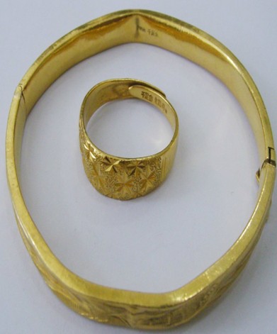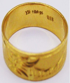 (2)看顏色:黃金首飾一般純度越高,色澤越深。正如人們常說的“七青八黃九紫十赤”,即如果金飾呈青黃色,含金量可達(dá)70%;呈黃色含金量可達(dá)80-90%;如果呈赤黃色,含金量可達(dá)95以上。當(dāng)然,僅僅憑顏色辨別黃金首飾的成色、真假是遠(yuǎn)遠(yuǎn)不夠的。